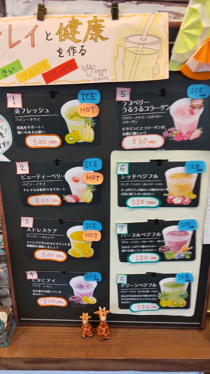 Welcome to Crepe de Girafe Itagaki, a delightful café located in Itagaki, Fukui. This charming spot offers a unique menu that features a variety of delicious crepes, thoughtfully prepared to order, ensuring a fresh and satisfying experience.